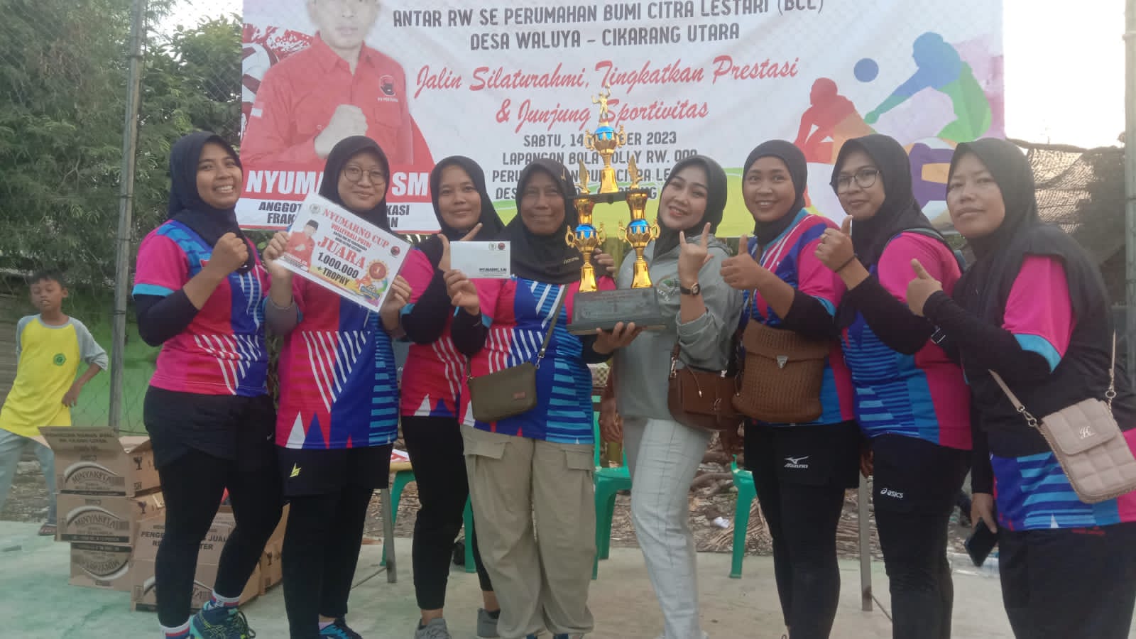 Turnamen Bola Voli Putri antar RW Se Perumahan Bumi Citra Lestari Piala Anggota DPRD Kabupaten Bekasi “Nyumarno Cup” resmi dibuka pada Sabtu (14/10/2023). Bertempat di lapangan bola voli Cempaka 10 RW 09 Perumahan Bumi Citra Lestari Desa Waluya Kecamatan Cikarang Utara Kabupaten Bekasi.