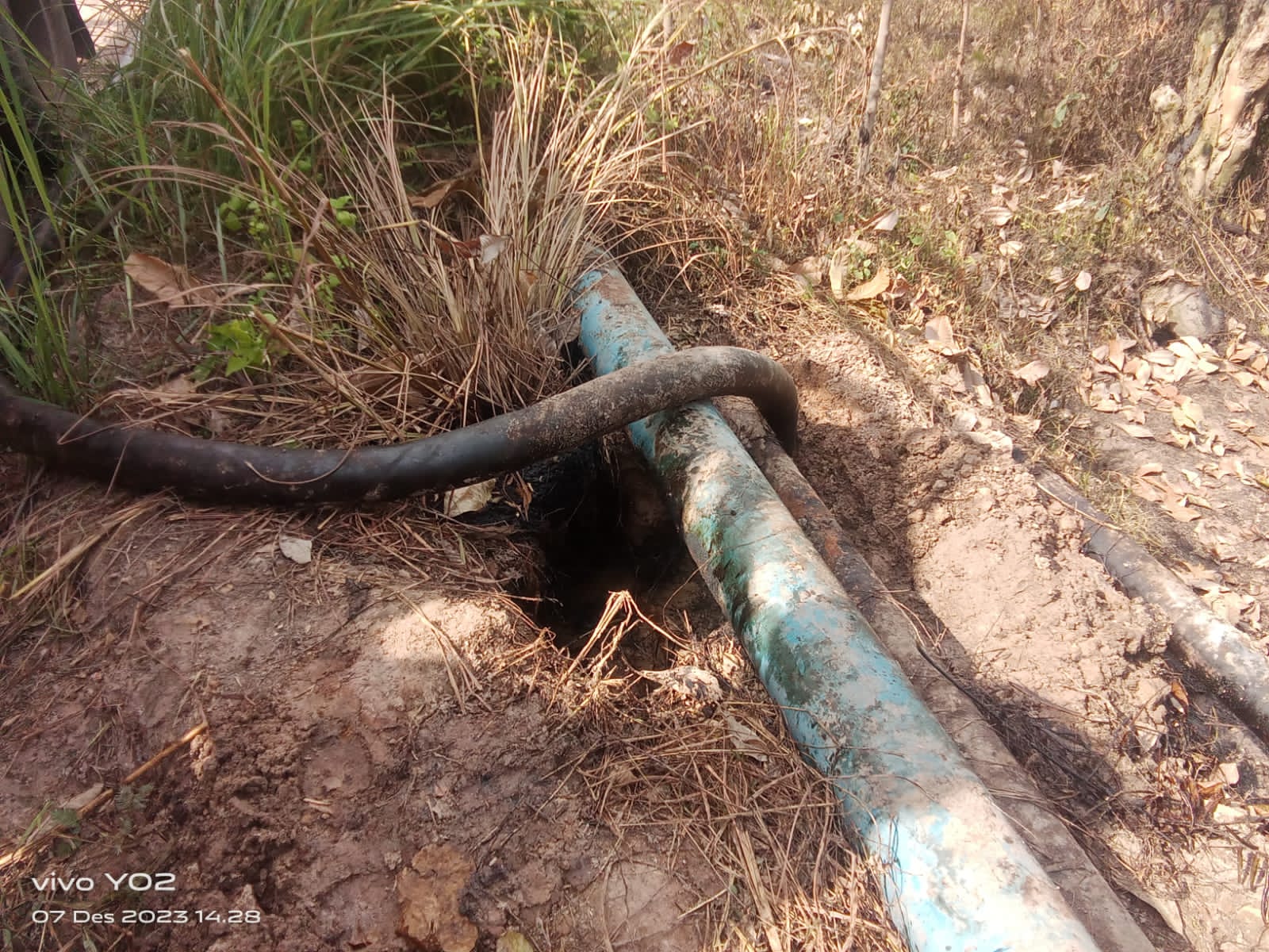 “iya ini kebocoran karena korosi yang terjadi sejak dari tanggal 02/12/2023 kamaren tatapi sudah kami tambal (klem) hari ini terjadi lagi kebocoran ditempat lain, kami dari pihak perusahaan sudah berupaya untuk memperbaiki kebocoran,pembersihan lahan dan penyisipan pipa yang baru,”paparnya