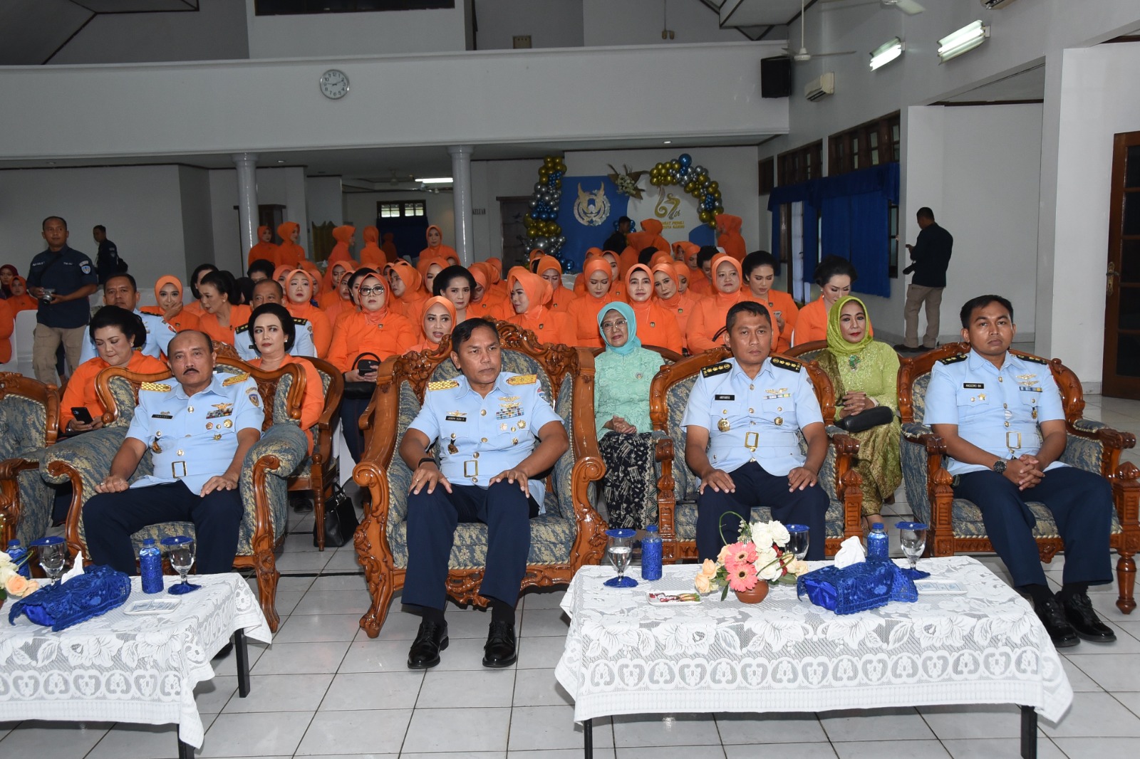 Perayaan HUT PIA Ardhya Garini ditandai pemotongan tumpeng oleh Ketua PIA Ardhya Garini Bakorda Bandung Ny. Rina Oki Yanuar yang diberikan kepada Ny. Syariffrudin anggota PIA Ardhya Garini Depohar 10 Koharmatau.