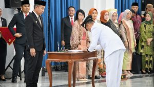 Penjabat Gubernur Jawa Barat Bey Machmudin melantik para anggota Badan Penyelesaian Sengketa Konsumen (BPSK) Kabupaten Cirebon, Kabupaten Indramayu, Kota Bandung, dan Kota Tasikmalaya, di Aula Timur Gedung Sate, Sabtu (30/12/2023).