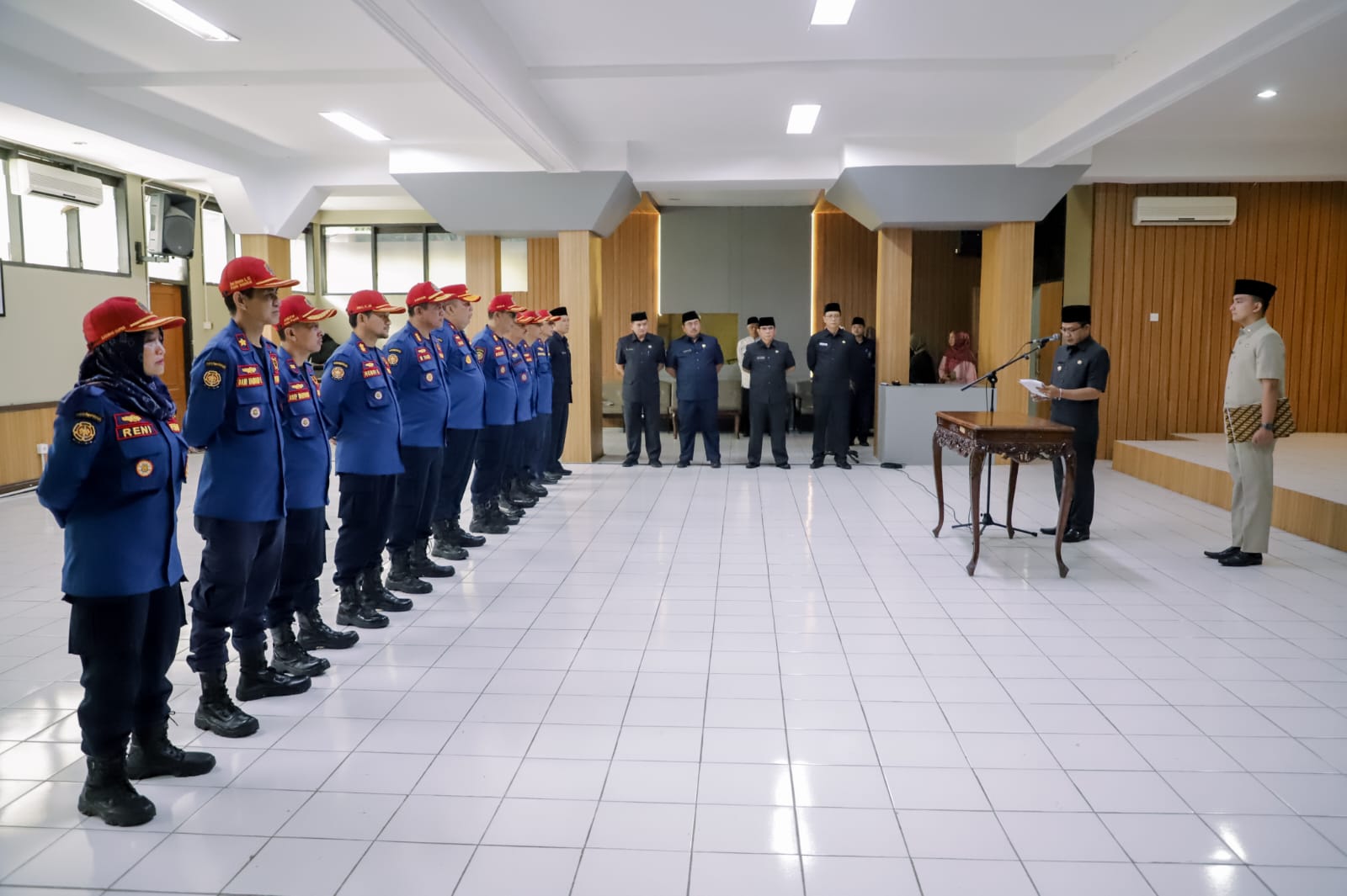 Bupati Bandung Dadang Supriatna mengukuhkan sekaligus melaksanakan pengambilan sumpah kepada 11 orang PNS, yang memangku jabatan struktural pada Dinas Pemadam Kebakaran dan Penyelamatan (Disdamkar Penyelamatan) Kabupaten Bandung di Ruang Bale Sawala Soreang, Selasa (23/1/2024). Kegiatan tersebut dilaksanakan sebagai implementasi dari Peraturan Bupati Nomor 64 tahun 2023 tentang Kedudukan Susunan Perangkat Daerah Kabupaten Bandung, dimana terdapat peningkatan status tipologi Disdamkar dan Penyelamatan dari dinas tipologi C menjadi A.