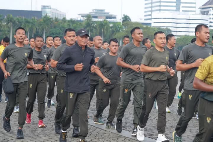 Jakarta – Panglima Kostrad (Pangkostrad), Letnan Jenderal TNI Mohammad Fadjar, MPICT., memimpin kegiatan olahraga lari bersama prajurit Markas Kostrad (Makostrad) di Lapangan Monas, Jakarta Pusat, pada Jumat (10/01/2025).