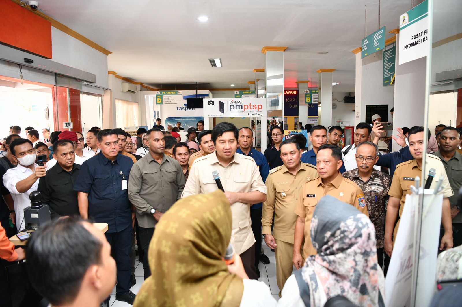 Pada Kamis (16/1/2025), Sekretaris Daerah Jawa Barat bersama Kepala Dinas Penanaman Modal dan Pelayanan Terpadu Satu Pintu (DPMPTSP) Jawa Barat telah mengadakan konsolidasi dengan seluruh Kepala DPMPTSP kabupaten/kota di Jawa Barat. Pertemuan ini bertujuan untuk mempersiapkan pelaksanaan layanan percepatan PBG secara serentak.