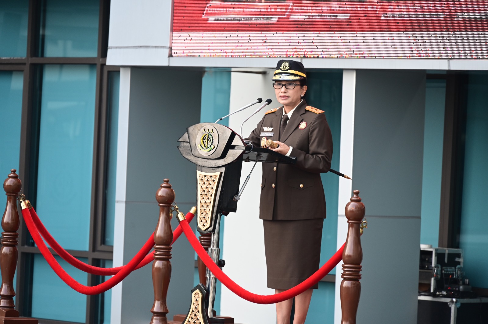 Bertempat di Lapangan Lantai 3 Kantor Kejaksaan Tinggi Jawa Barat, Kajati Jabar Katarina Endang Sarwestri, S.H., M.H. memimpin Upacara Peringatan Hari Lahir Kejaksaan ke-80, yang diikuti oleh Wakajati Jabar Dr. Jefferdian, S.H., M.H. para Asisten dan seluruh pegawai Kejaksaan Tinggi Jawa Barat (02/09/25).