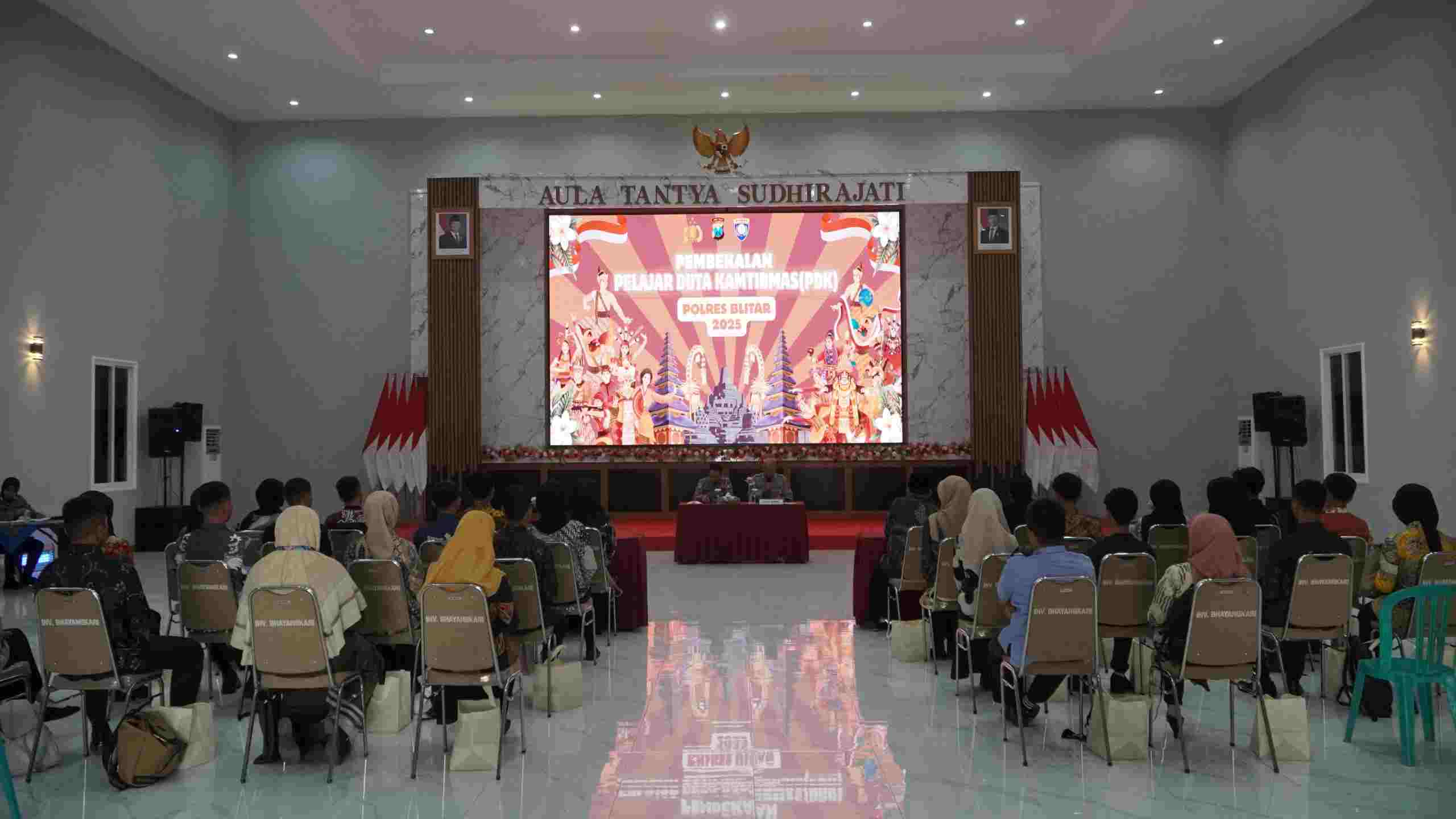BLITAR TEMPORATUR .COM – Polres Blitar melalui Satuan Binmas menggelar kegiatan Pembekalan Pelajar Duta Kamtibmas (PDK) Tahun 2025 yang berlangsung di Aula Tantya Sudhirajati Mapolres Blitar. Kegiatan ini diikuti oleh perwakilan pelajar dari berbagai sekolah tingkat SMA/SMK/MA di Kabupaten Blitar, Jumat (26/09/2025).